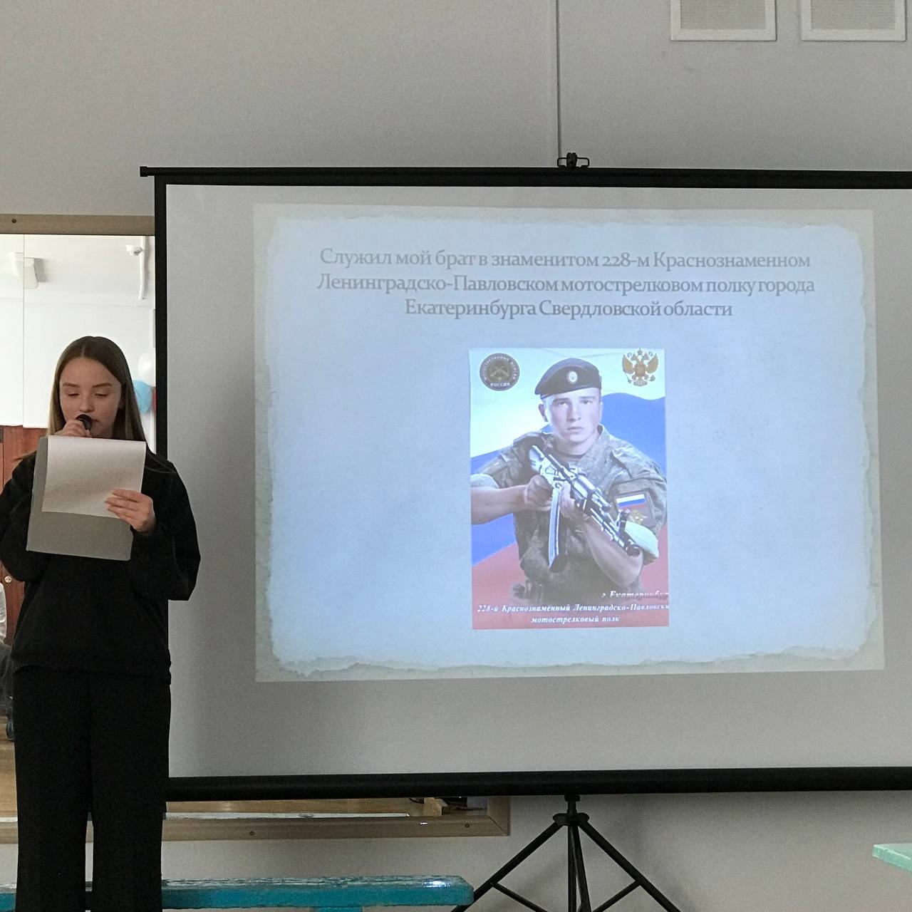 В ГБОУ СОШ №7 города Похвистнево в рамках патриотического воспитания Советник директора по воспитанию Иванова Ю.И. совместно с классными руководителями Кондратенко М.В., Бегеевой М.В. Яковлевой Ю.В. подготовили концерт, посвященный «Дню Героев Отечества». На концерте присутствовали директор ДМО Смирнов М.М., главный специалист СВУ Петров О.В., мама нашего героя Константинова Г.Р., педагоги и обучающиеся школы.